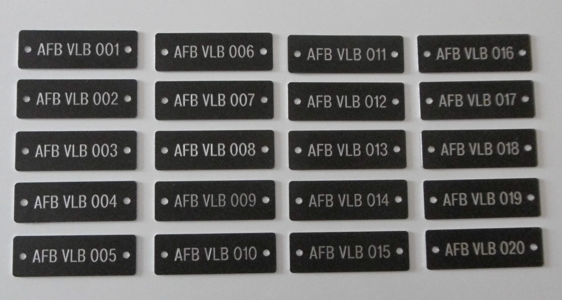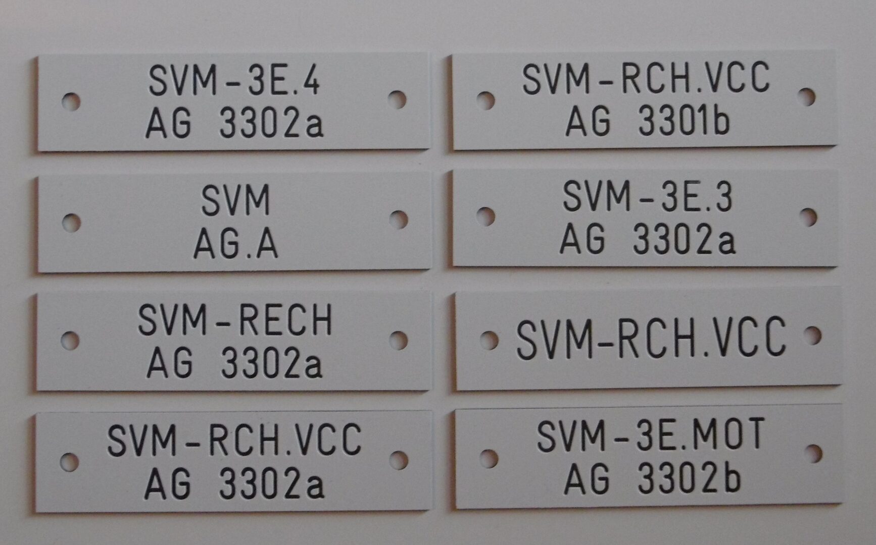 Nous offrons une grande flexibilité dans la personnalisation des étiquettes gravées : choix du matériau, de la forme, de la taille et du texte à graver.